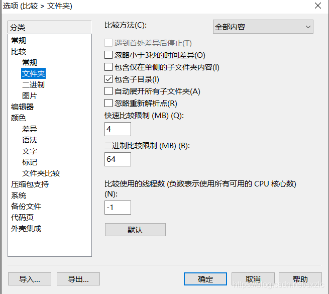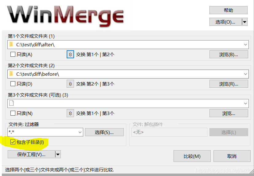 此时,关闭WinMerge,重新单个拖拽文件夹,并选中【包含子目录】,